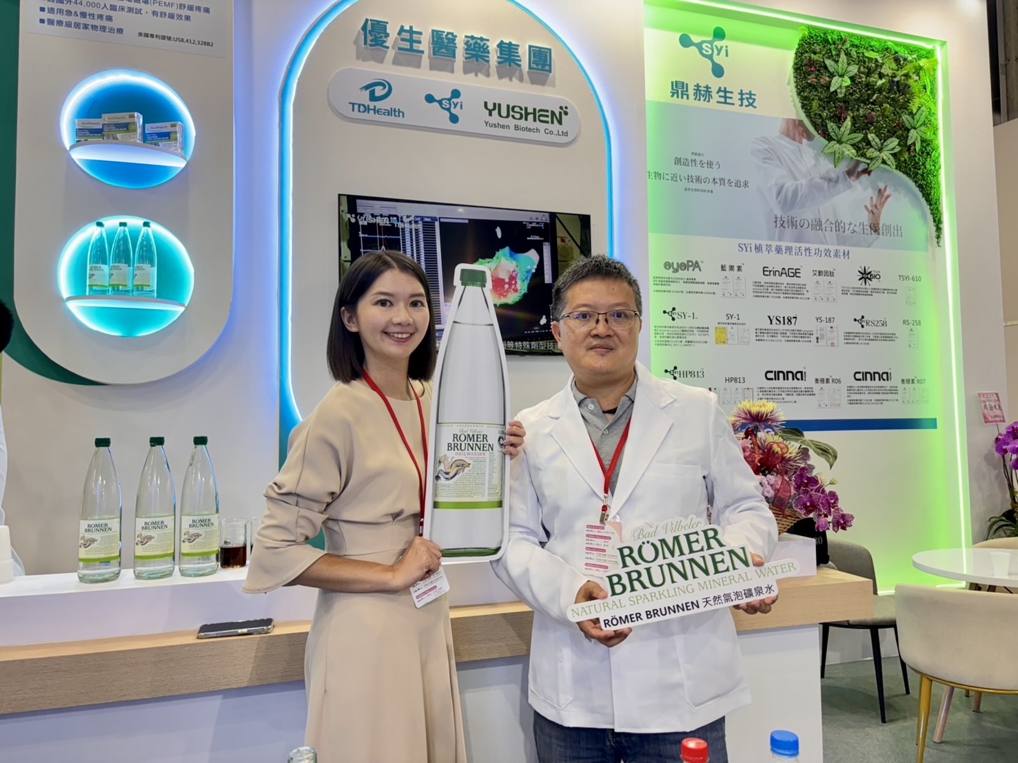 成績傑出的優生醫藥集團是本次展會焦點之一,作為深耕台中、根植台灣、放眼東南亞地區的本土醫藥企業,特別介紹由其亞洲唯一代理、進口至台的「RÖMER BRUNNEN 羅馬天然氣泡礦泉」,為參觀者帶來絕無僅有的飲用體驗。該泉源跨越百年,產自德國高質量泉區,每年限額採集兩次,在德國被官方核准為醫療等級的”Heilwasser”,此次首度在台灣正式展出,引起高度關注,尤其這瓶水被喻為「世界上最難喝的礦泉水」,因此在活動現場引起高度關注。