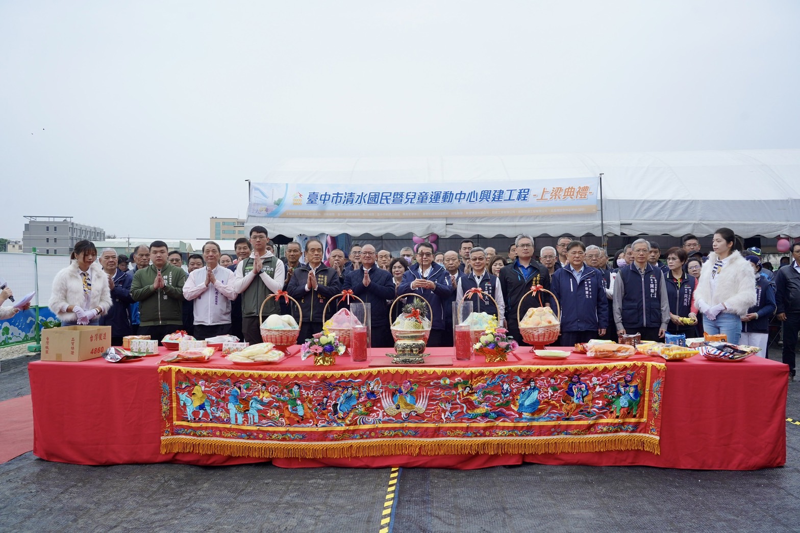 為鼓勵全民運動,台中市政府打造海線首座「清水國民暨兒童運動中心」,包含兒童運動空間及球類、泳池與可彈性使用的競技與集會場所,今日舉辦上梁典禮。