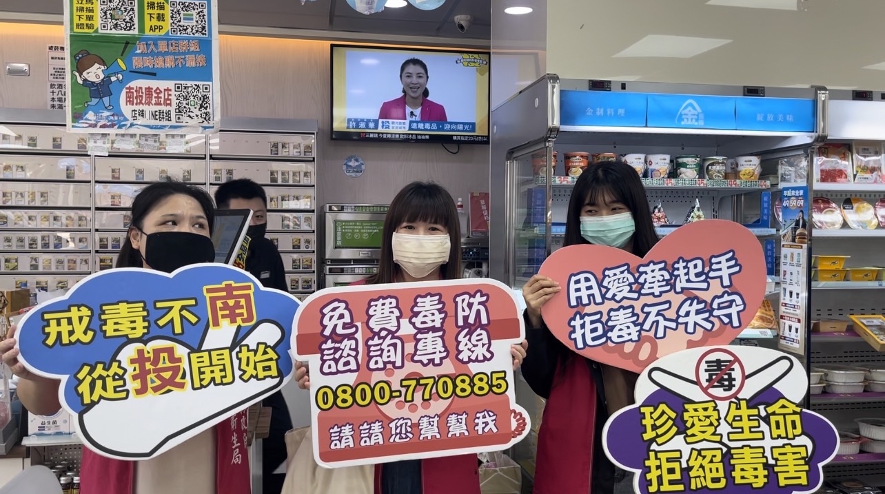 今年南投毒防中心繼續與連鎖超商合作,於暑假期間在南投、台中、彰化及雲林4縣市近900家連鎖超商門市,同步以店內結帳櫃台LED螢幕、廣播,露出許淑華錄製的反毒宣導短影音,讓大家一起拒絕毒品、迎向無毒家園。