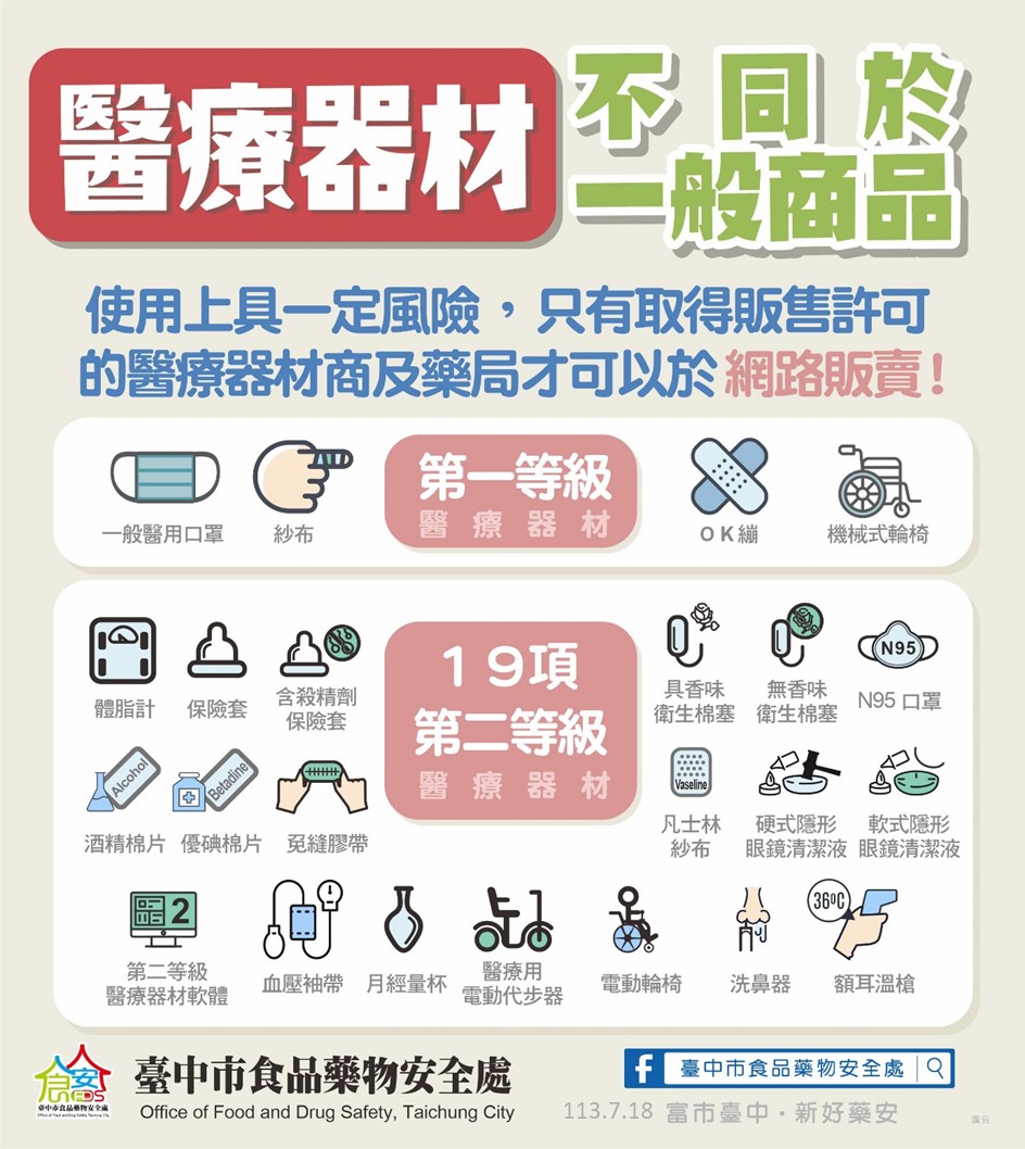 食安處指出,合法製造、輸入的醫療器材,產品外包裝都會標有醫療器材品名、許可證字號及廠商名稱地址等資訊,若不清楚產品是否屬於醫療器材,民眾可至衛福部食藥署網站的許可證資料庫食藥署網站首頁>醫療器材>資訊查詢>醫療器材許可證資料庫查詢。