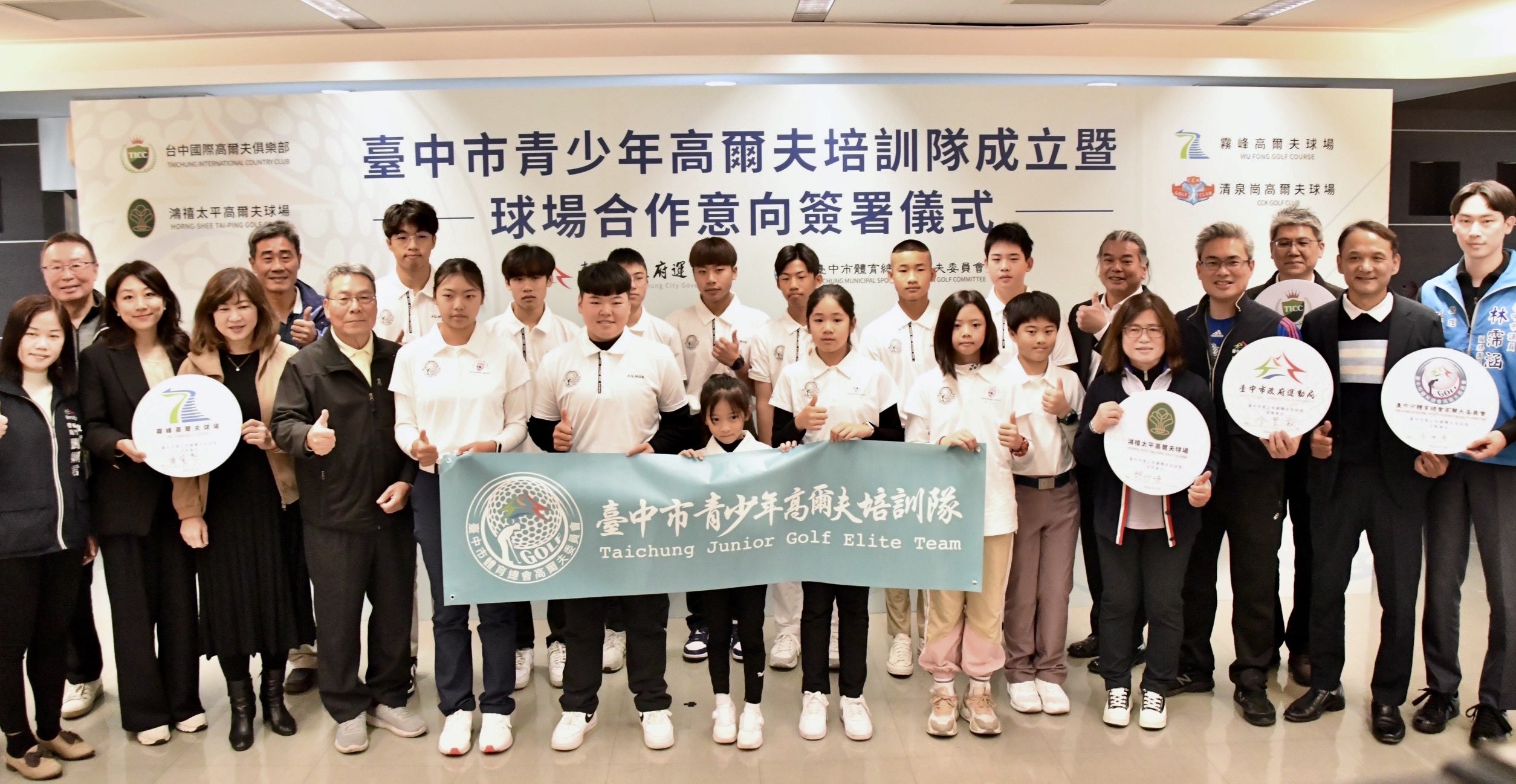 為培育優秀高爾夫運動人才,在台中市政府運動局的支持下,台中市體育總會高爾夫委員會成立青少年培訓隊,並於今日與中部4家專業球場簽署合作意向,運動局長李昱叡出席觀禮,李昱叡表示,感謝高爾夫球委員會致力培育人才成立培訓隊,也感謝台中國際、清泉崗、鴻禧太平及霧峰等高爾夫球場支持協助選手培訓,透過三方攜手合作讓人才培育向下扎根。