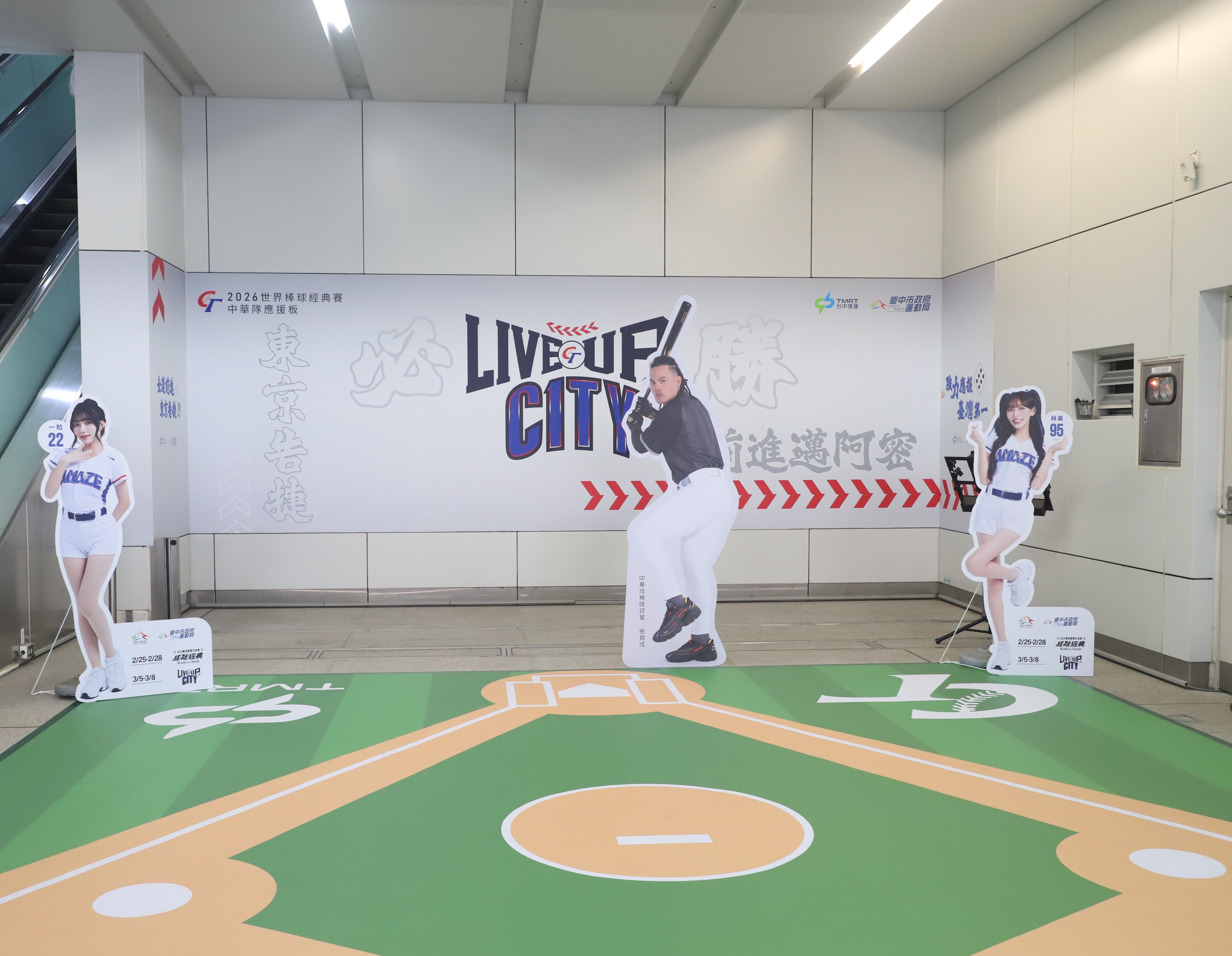 配合活動,捷運市政府站1樓設置棒球主題「球場造型打卡區」,包含球員張育成與啦啦隊女孩等比例立牌、計分板及賽程表,並設有留言牆供民眾寫下祝福,球賽期間,中捷全線車站列車進站音樂將播放中華隊應援曲〈就一起〉,各站跑馬燈也將更新賽事戰況與結果,提供乘客即時資訊。