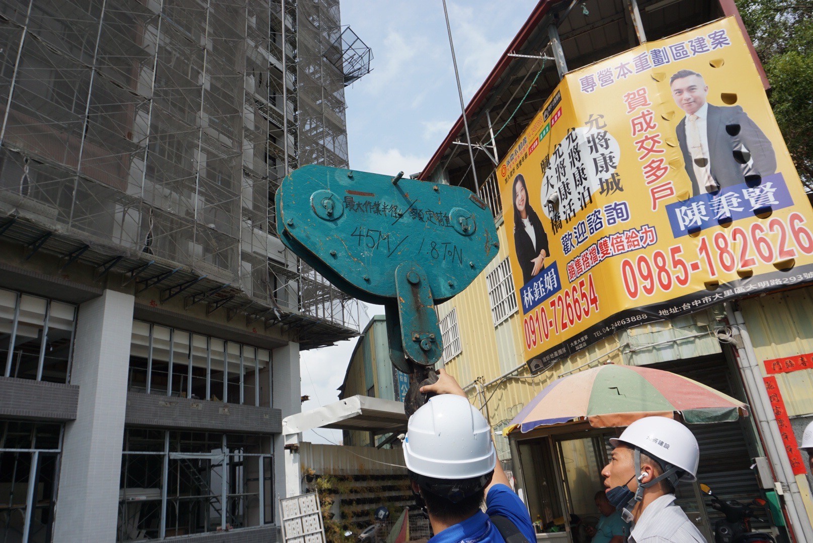 勞工局長張大春表示,工地所設塔吊如吊升荷重在3公噸以上,屬職安法所稱危險性機械,應由勞動部職業安全衛生署檢查合格後才能使用,並應具備業界俗稱的「1機3證」,才可從事起重吊掛作業,其中包含危險性機械檢查合格證、操作人員合格證(技術士證)、吊掛作業人員合格證等,另提醒業者在從事吊掛前,應落實每日自主管理檢查,確認吊掛作業半徑,更應防止吊舉物通過人員上方,並防止人員進入吊舉物下方的安全措施。