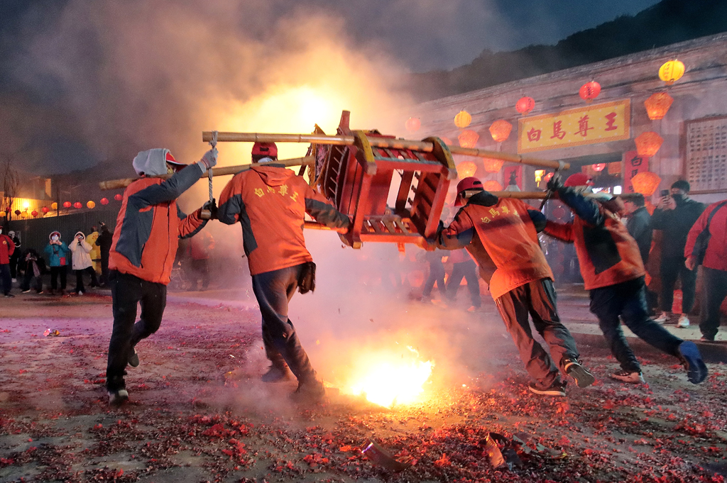 到了正月十五元宵節這一天,整個北竿彷彿進入「全島總動員遶境」的節奏,炮聲、鑼鼓聲此起彼落,場面壯闊熱鬧。神轎隊伍穿梭各村落,與其他宮廟的隊伍相遇時,神明之間會彼此問候拜年,隊伍停下、互相致意,那種神與神的交流,宛如一場盛大的神界對話。