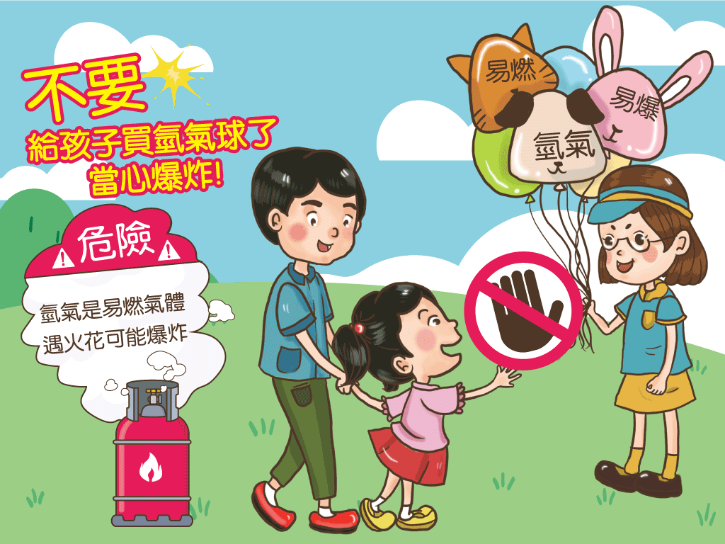 中市法制局表示,氣球是以不可燃的氦氣填充,但有不肖業者為降低成本,使用便宜、易燃的氫氣填充,一旦遇到火花恐發生爆炸,極易衍生傷人風險。市面上販售的充氣氣球,屬於行政院經濟部標準檢驗局公告應施檢驗的玩具商品,應符合國家標準CNS4797-1相關規定,不得含有易燃氣體,且商品必須貼附合格檢驗標識及中文標示。