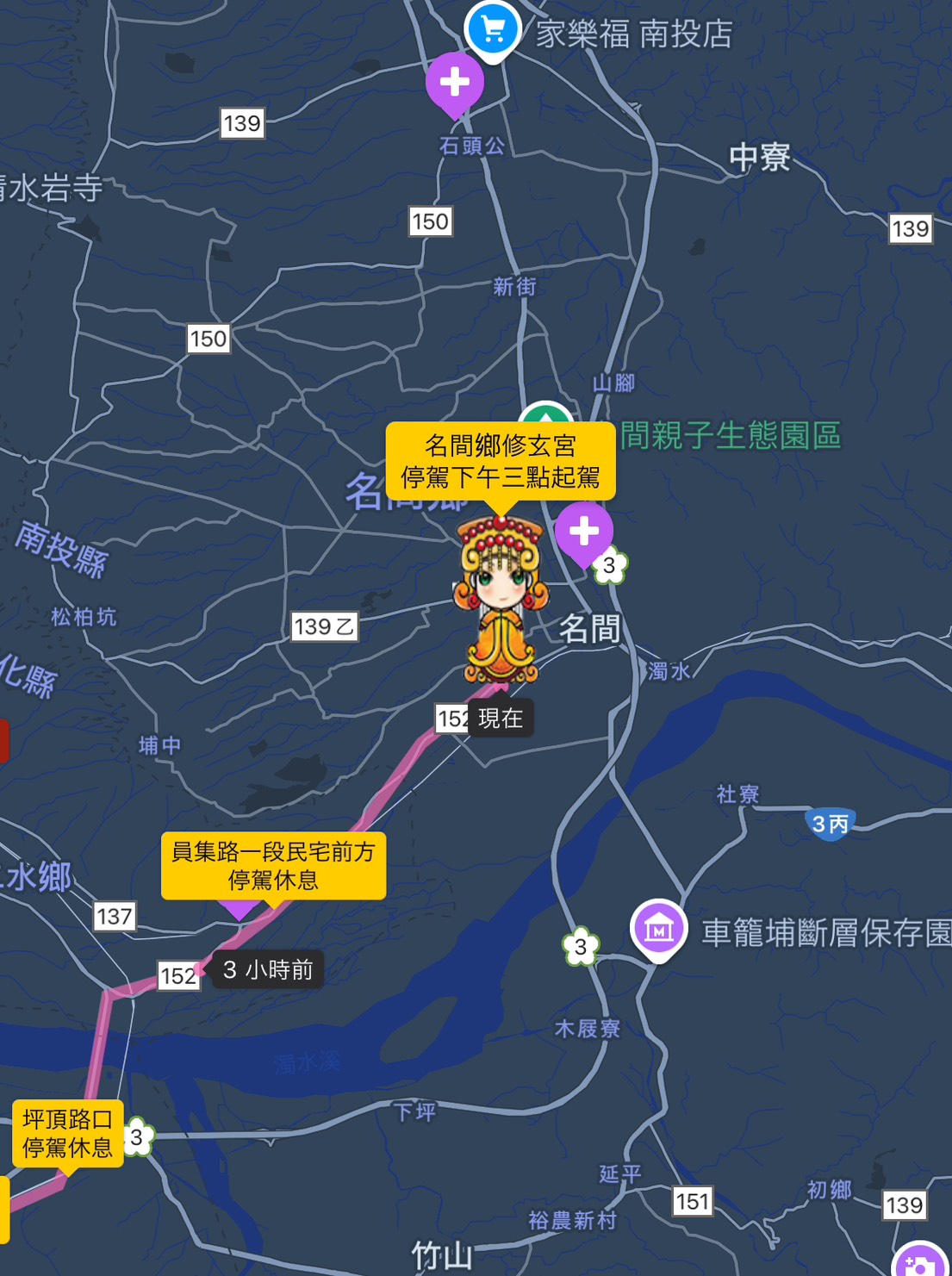 鑾轎進入名間鄉後,下午可能通過南投市,轄區南投縣政府警察局南投分局公告,為維護進香活動通過名間鄉、南投市各交通要道期間交通安全及秩序,今日上午8時到明(7)日晚間8時視行進路線及實際交通狀況彈性人車管制。