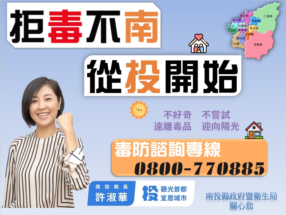 響應6月26日國際反毒日,並配合暑期到來,南投毒防中心規劃一系列的反毒活動在6月正式起跑。縣府毒防中心今年與連鎖超商結合,舉辦毒品防制宣導,由縣長許淑華親自錄音,日前在南投、台中、彰化及雲林一日生活圈境內超商門市,進行為期1個月的毒品防制廣播宣導,並於本月4日舉辦反毒羽球賽。各鄉鎮市衛生所亦利用各式場合,陸續舉辦反毒宣導,讓反毒、識毒力量深入地方,宣示縣府反毒決心。