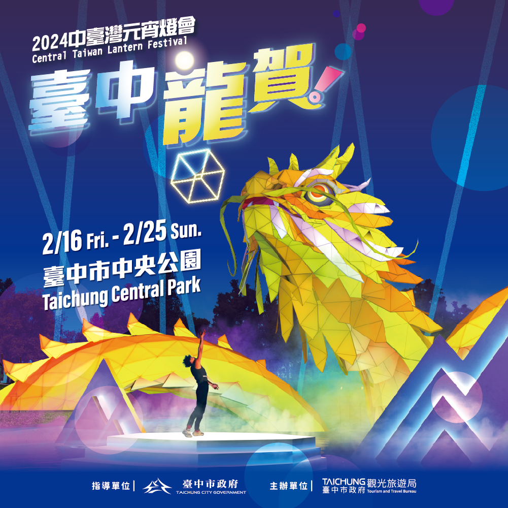 2024中台灣元宵燈會將於2月16日至2月25日於台中市中央公園盛大開展,今年以「台中龍賀」為主題,搭配「樣樣好」的台語諧音「龍賀」,呈現台中樣樣好、美好生活的城市魅力。台中市觀光旅遊局今日公布今年主視覺,以幾何寫實風格設計呈現主燈黃金龍,整體設計呼應了中台灣元宵燈會堅持傳統花燈工藝的精神。