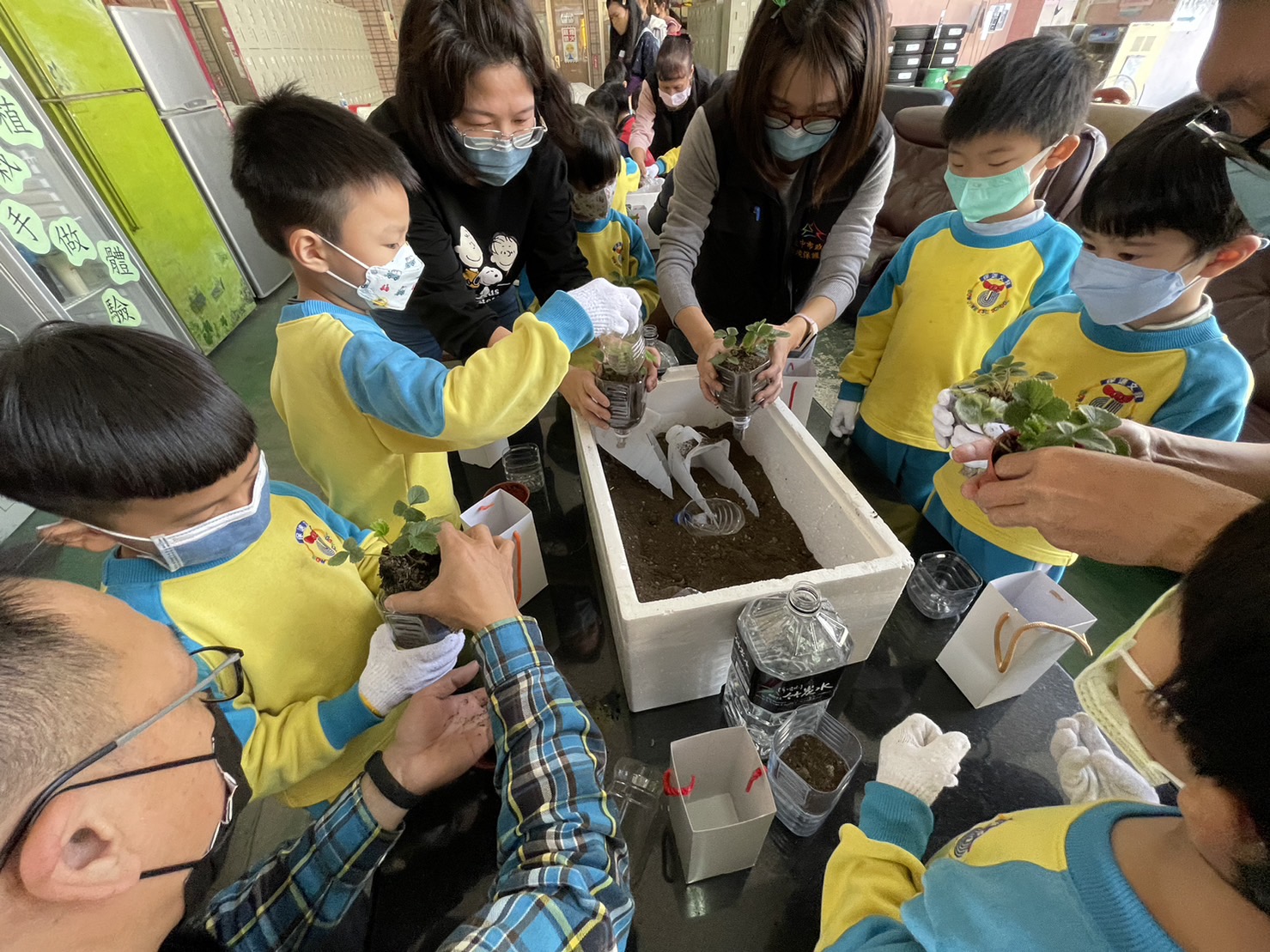 環保局指出,清潔隊同仁們以廢棄腳踏車的傳動鏈條經過清洗去污後,加工製成特色鑰匙圈作為活動獎品,體驗活動還將回收後的寶特瓶作為盆栽器皿,廢棄彈簧床墊內襯棉布作為澆灌工具,搭配環保局阿罩霧培養土,讓學童們可自己打造草莓盆栽,深受小朋友歡迎。