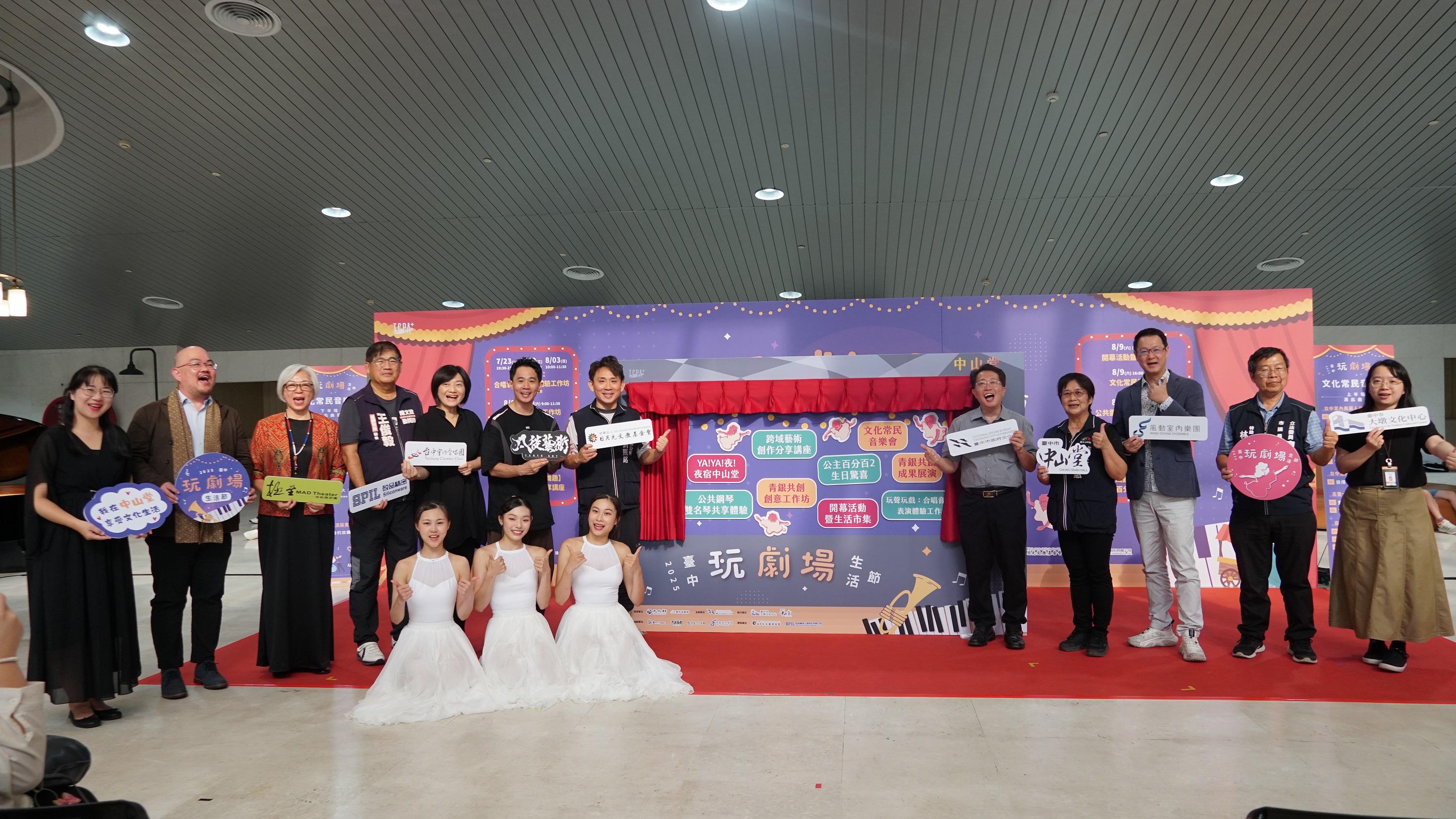 「2025台中玩劇場生活節」今日於中山堂熱鬧開幕,台中市文化局大墩文化中心主任陳文進攜手凡徒表演藝術、台中室內合唱團、風動室內樂團等表演團隊共同為活動揭開序幕。陳文進表示,中山堂陪伴台中市民超過35年,未來將持續實踐市民劇場的精神,讓大家在日常生活中輕鬆親近劇場、感受表演藝術的魅力。