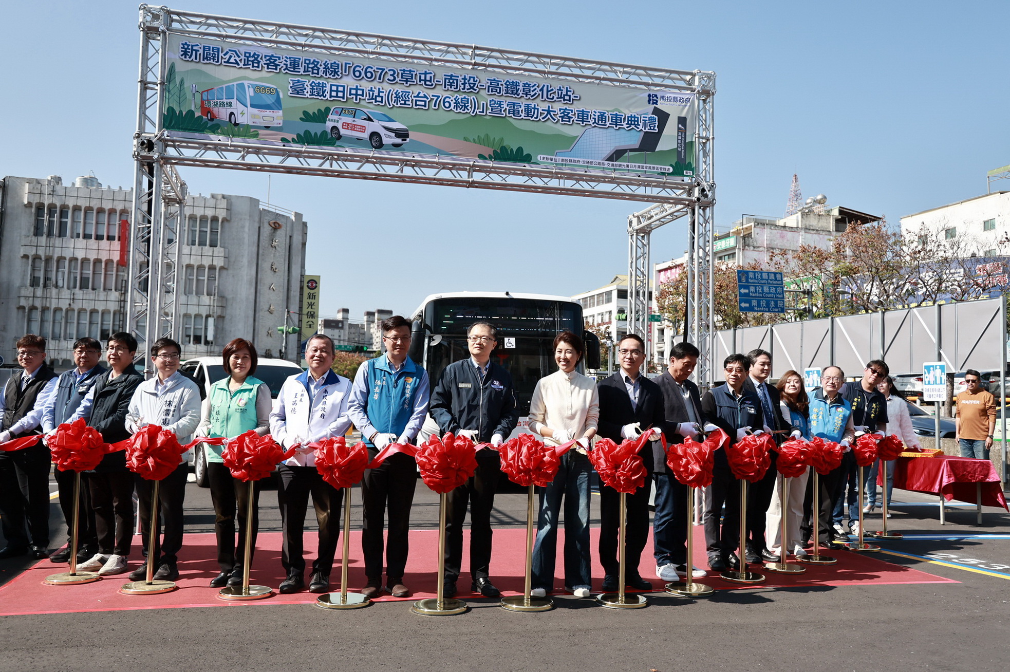 為提升南投地區公共運輸便利性並補足南下客運轉乘不足的問題,南投縣政府今(20)日在南投復興停車場(南投轉運站預定地)舉行新闢公路客運路線「6673草屯-南投-高鐵彰化站-臺鐵田中站(經台76線八卦山隧道)」暨電動巴士通車典禮。該路線正式啟用後,將串聯南投、彰化兩縣重要交通節點,強化跨縣市轉乘接駁功能,提升整體旅運效率。