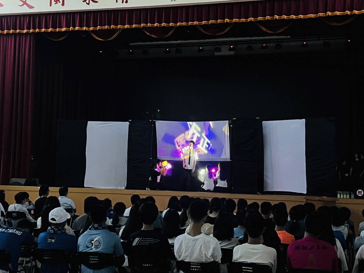 學校為拓展學生視野,111年開始推動跳島計畫,帶領學生到金門、小琉球、澎湖演出,今年持續跳島4.0的計畫,獲得教育局、介壽國中小、塘岐國小與民間團體的協助,到馬祖演出,和大家分享光影戲的魅力! 本次演出劇目為「我是誰?」故事描述熱愛烘焙的高中生小傑因見義勇為,在車禍中為了救富家女小茜而頭部受傷,在不知情的情況下,小傑腦部被植入AI晶片。他因此在課業、體育各方面都突飛猛進,成了學校裡的風雲人物。