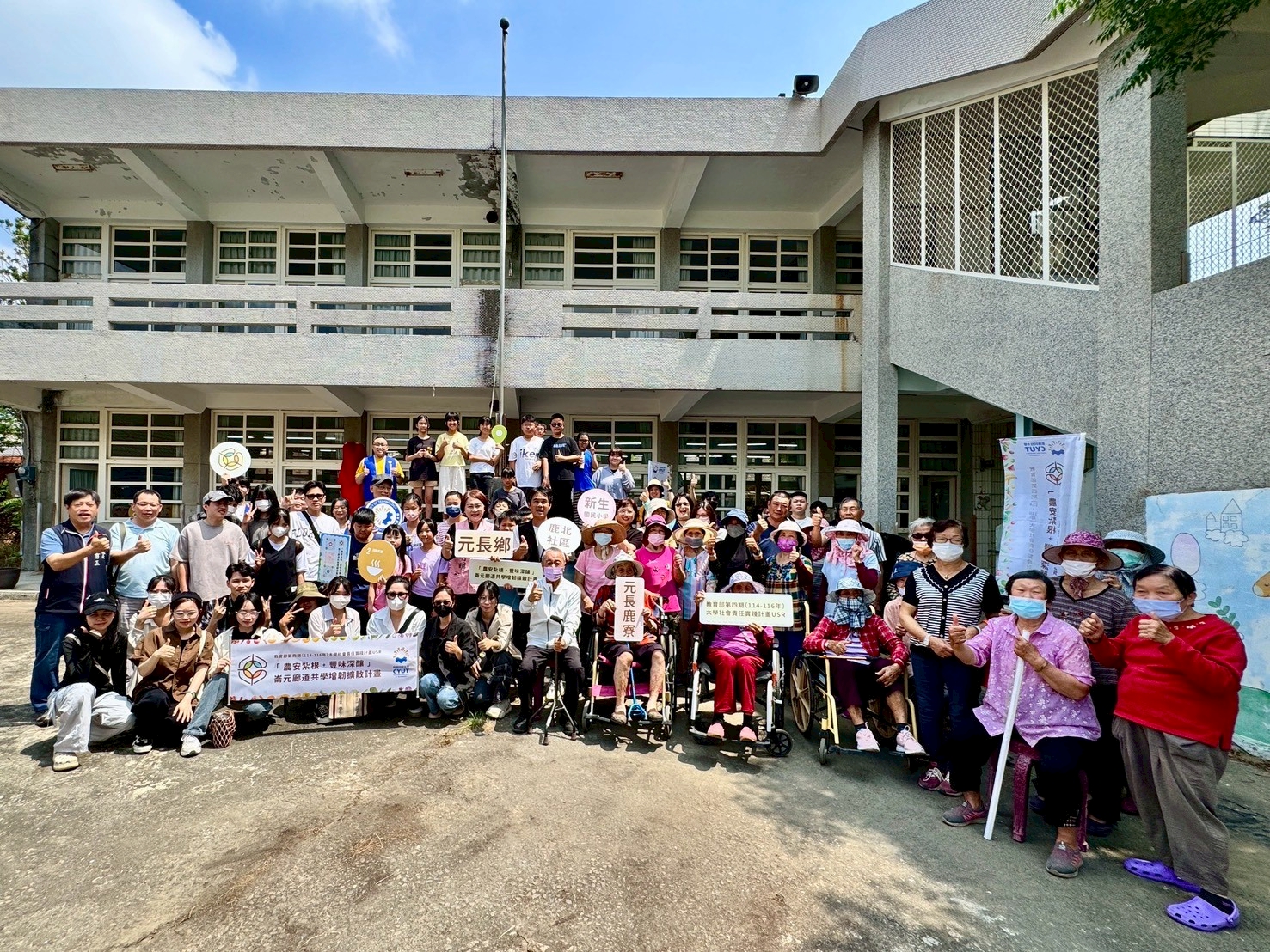 朝陽科大應化系USR團隊將荒廢多年的雲林元長鄉新生國小鹿北分班,打造成為「雜食糧學教育推廣中心」,雲林鄉長李明明、鹿北社區發展協會總幹事吳學展及高齡105歲的湯老奶奶(前排坐輪椅右三)都大力支持。