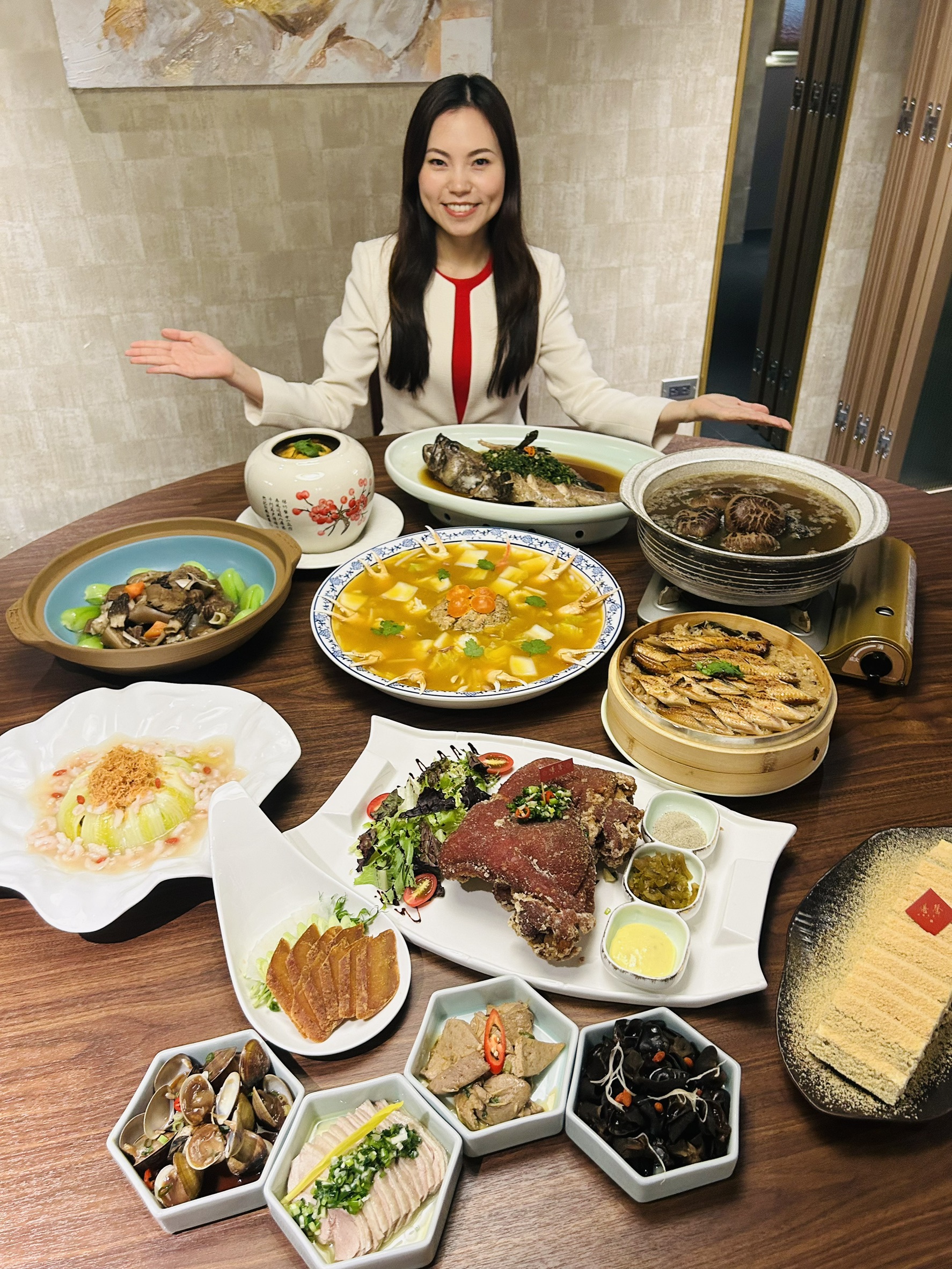 膳馨餐飲集團延續12年來膳馨對台菜手路工藝的堅持,今年年菜以「原型食補新詮釋」為主題,從經典菜色到創意轉譯兼具傳統精神與現代風貌。包含連續12年都穩坐招牌的「椒鹽大元蹄」、象徵金玉滿堂的「金湯花膠海鮮羹」、融合日式味噌風味的「爐烤白鰻香米糕」,以及採乾式陶鍋收汁技法烹製的「陶鍋人蔘土羊肉」,皆充分展現膳馨對年節料理的「健康」又不失澎湃的新詮釋。此外,也貼心推出全台宅配冷凍年菜組,提供6人份(5,388元)與4人份(2,999元)選擇,滿足不便外出的家庭輕鬆在家享受餐廳級佳餚。