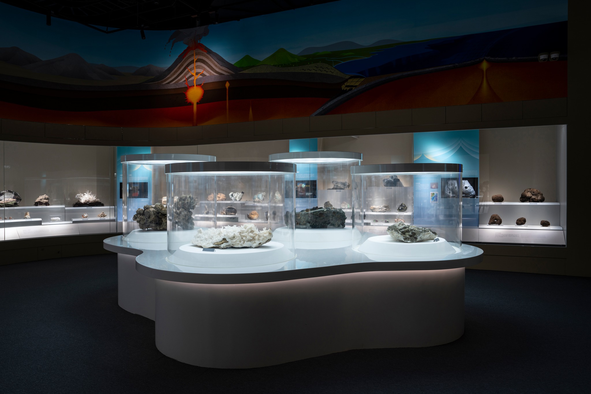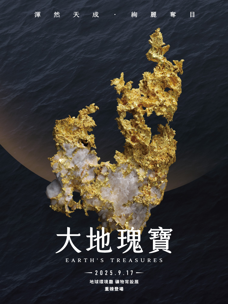 歷時5年籌劃,國立自然科學博物館即日起隆重推出臺灣首座大型礦物常設展《大地瑰寶》,展區分為3廳、近600坪,匯聚本館30餘年珍稀礦物蒐藏,現場精選1700餘件礦物標本,包括巨大鐘乳石群、隨紫外線不同波段綻放絢麗光彩的螢光礦物、巨大心型的紫水晶洞、臺灣獨有寶藏北投石,以及曾為臺灣創造經濟奇蹟的九份金瓜石、自然金和豐田閃玉,亦有人類首度成功登月,由阿波羅11號帶回的月岩,規模浩大,每件展品皆有精彩故事,可完整呈現礦物從地球孕育、環境變遷到人類應用的壯麗篇章。
