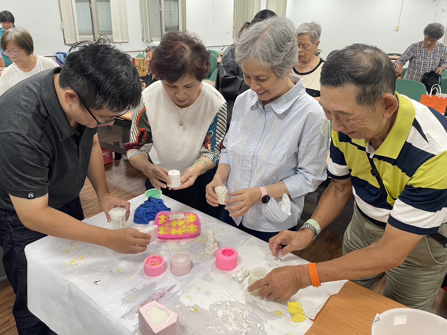 ▲ 擴香石教學製作讓長青學苑的長輩很有成就感,同時發揚在地文化特色