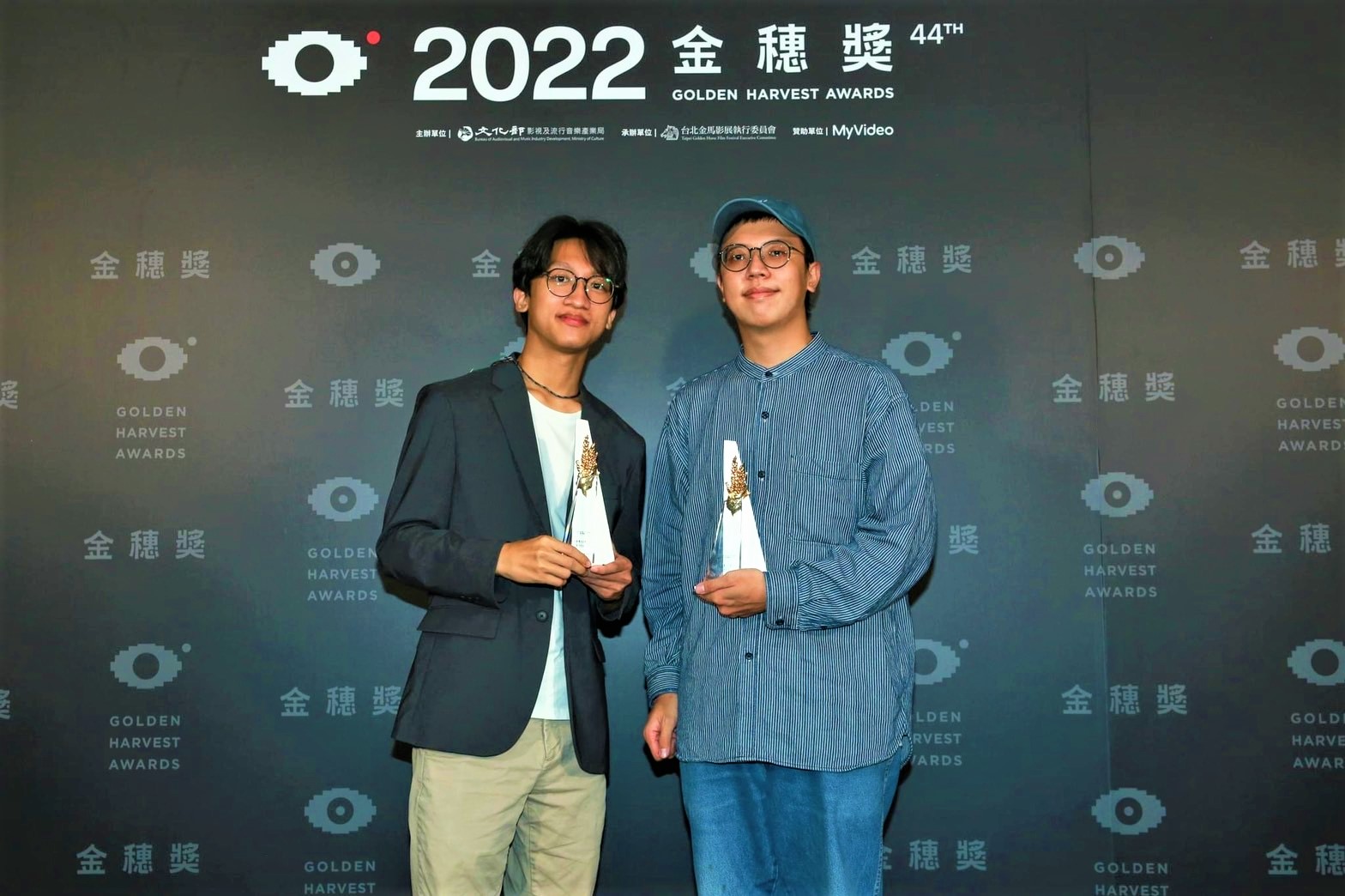 朝陽科大傳播藝術系學生陳浩維(左)及王韋喬(右)以〈腸躁男孩〉榮獲金穗獎評審團特別獎。