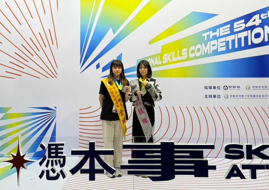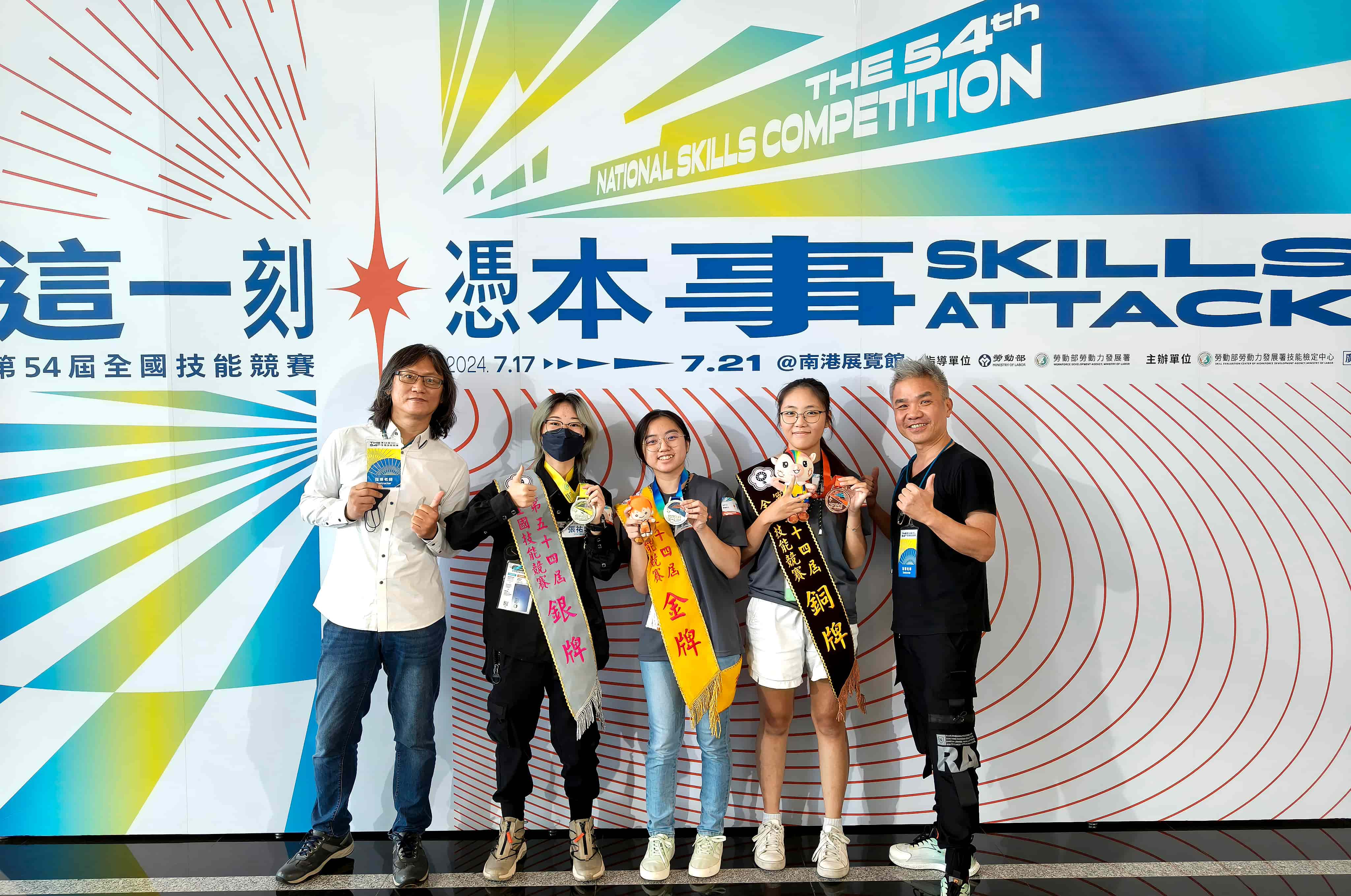 由勞動部勞動力發展署辦理之第54屆全國技能競賽,近日公布英雄榜,朝陽科技大學囊括「3D數位遊戲藝術」及「工業設計技術」職類共2金2銀1銅,其中,資訊管理系學生陳奕璇及工業設計系學生王子予分別榮獲3D數位遊戲藝術及工業設計技術職類青年組金牌,接受賴清德總統表揚;而資管系張祐均、郭遴榮獲3D數位遊戲藝術職類銀牌及銅牌,工設系許倖瑜榮獲工業設計技術職類銀牌,由勞動部長何佩珊頒獎,接續角逐世界技能競賽國手資格,表現十分亮眼。