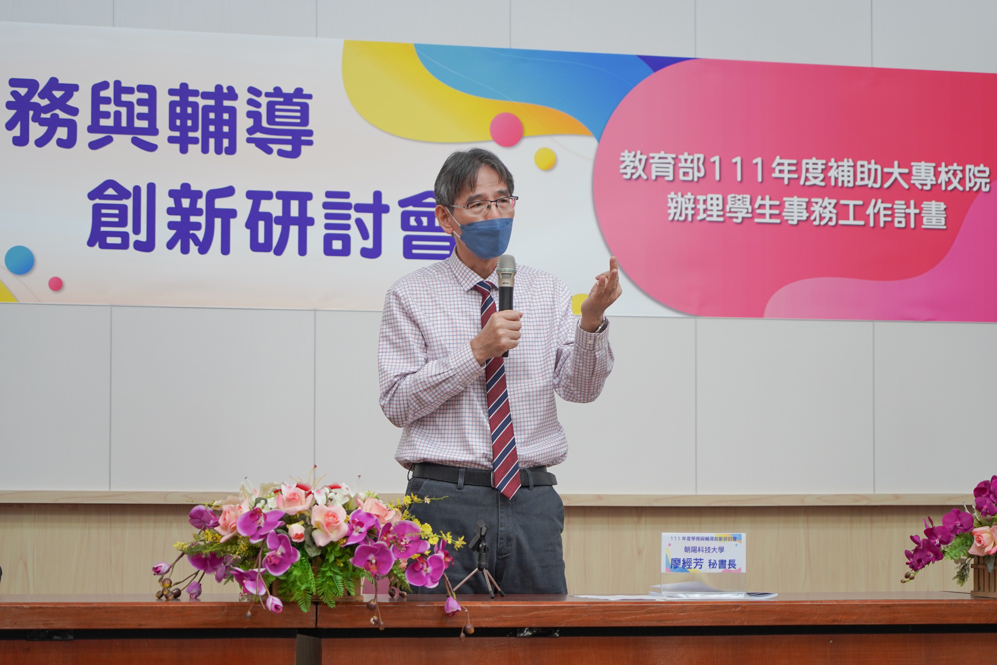 為促進學務與輔導工作人員交流,教育部111年度補助大專校院辦理學生事務工作計畫—學務與輔導創新研討會25日在朝陽科技大學展開,各校學務長、學務主管及其他學務輔導工作人員共計80人參與,期能藉由學務與輔導工作創新之實務經驗交流觀摩,分享個案與成果,進而提升學務工作績效。