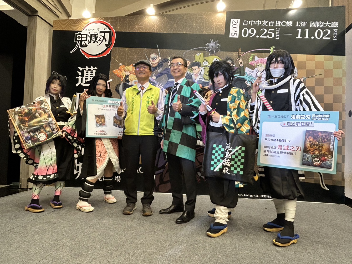 中友百貨店長陳俊華表示:「中友購物節自9月11日預購至今,呈現採購熱潮,今年搭上中秋送禮商機,食品區表現相當亮眼。迎接連續假期來臨,中友百貨再次引進人氣IP活動,這也是中友購物節首次策畫動漫活動,總計39天、主打二大熱門IP,結合一中商圈人潮,預計將吸引超過15萬人次觀展,人潮較暑假動漫祭增長25%。本次同檔期同場地推出《鬼滅之刃》與《膽大黨》雙重快閃店,更是展現動漫文化在中台灣的蓬勃魅力。無論是經典再現的《鬼滅之刃》,或是新生代代表的《膽大黨》,都將帶給粉絲「好拍、好逛、好買」的全方位體驗。」開幕式中也出現一位特別嘉賓-彰化市長林世賢蒞臨,林市長表示:「彰化市公所與中友百貨即將於10月18日在中友百貨彰化店基地旁公園攜手合作舉辦假日市集,邀集了20多家專櫃廠商擺攤,屆時將邀請動漫Coser一起到假日市集與民眾同歡,特別趁今天將訊息搶先公布給消費大眾,歡迎民眾在10月18日當天前往彰化市一起同樂。」