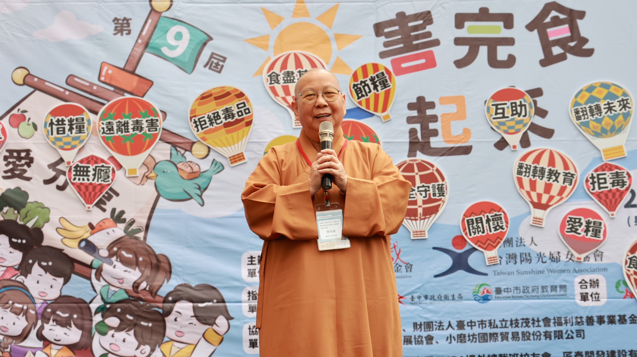 臺中市政府社會局副局長廖宗侯特別代表市長盧秀燕來到現場,表示「反毒」及「反食物浪費」的議題一直是臺中市政府所關注,因為全國上下都對臺灣毒品氾濫的問題非常憂心,且毒品侵入校園問題嚴重,因此針對施用毒品的兒童青少年也在毒品危害防制的網絡制度面與社會福利面有更多元的介入。而在惜食部份,臺中市政府特別感謝社團法人台灣陽光婦女協會這段時間的推動,107年加入『臺中市食物銀行聯盟店』,成為臺中市首間社福團體自辦實體食物銀行,同時也是臺中市政府第14間聯盟店,今年還接下台中市政府愛心食物銀行大里店的服務工作,更擴大將惜食實踐在社會上。他提到今天還看到兩個主辦單位發展數位學習平台,讓國際議題成為網路遊戲,更貼近兒少及民眾,他很感謝主辦單位共同打造臺中市成為一個無毒、無飢餓的友善城市!