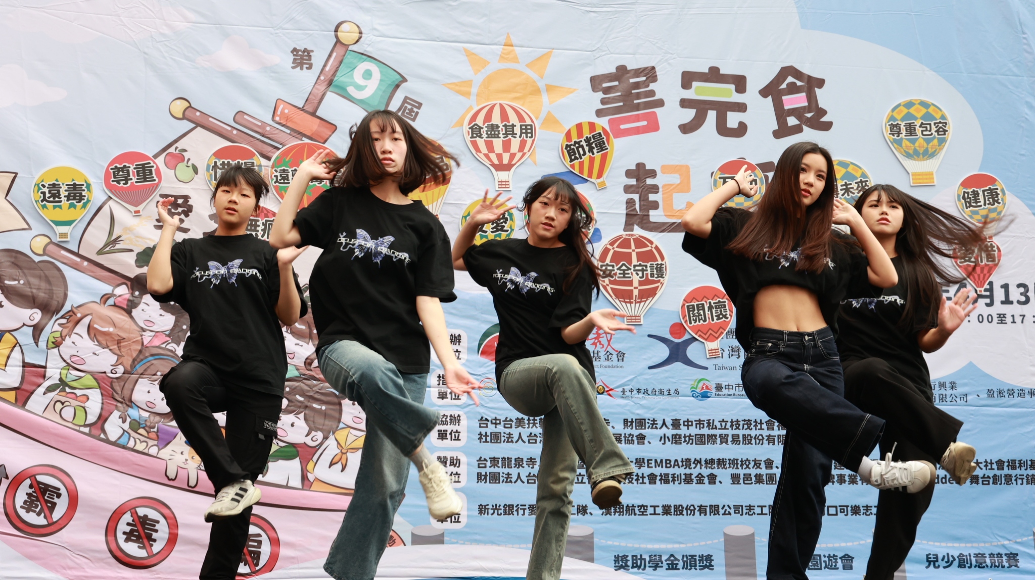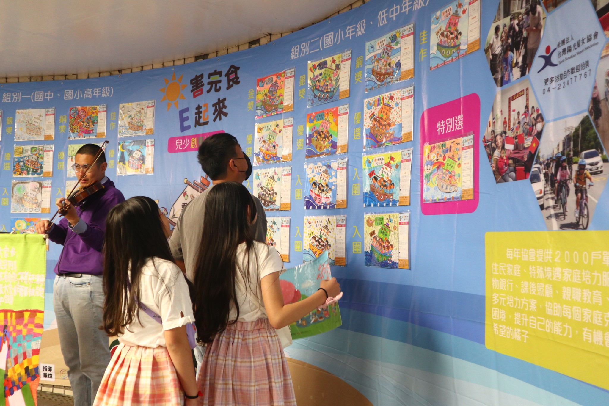 財團法人臺中市私立迎曦社會福利基金會偕社團法人台灣陽光婦女協會、向得行興業(股)有限公司、盈淞營造事業股份有限公司於4/13(日)假台中廣三SOGO百貨一樓廣場辦理「第九屆0害完食E起來」宣導活動。此次活動針對兩個社福機構在地深耕多年服務弱勢,發現社區紮根教育之重要性,並從服務中發現兒少施用毒品問題實則動搖國本,全球食物浪費問題危害環境,因而特別選定兩大主題「兒少反毒反霸凌法詐騙」與「惜食逆轉勝」進行宣導活動,並積極推動兒童、青少年及家庭的正向生命教育與提升自我價值。主辦單位將今年的反毒與反霸凌、反詐欺結合以期推動社區0害觀點,同時也辦理青少年舞蹈創意表演以推展正向休閒活動,使民眾清楚了解還有很多正向活動可以遠離毒品、遠離霸凌及詐欺;另外,積極提出SDGs中的消除貧窮、終止飢餓、氣候行動、良好健康和福祉為「惜食逆轉勝」永續發展目標。除此之外,主辦單位從去年開始設計兩個數位學習平台,預計透過民眾最喜愛的網路遊戲作為為校園及社區宣導議題的導入,使大家可以從遊戲中獲得新知,在去年也投入台中市各級國中辦理了三十幾場校園數位學習宣導活動,今年也將繼續推動。今年活動特別加入了繪畫比賽,分別有國小低中年級、國小高年級及國中兩大組,並邀約兒少參賽,並選出各組的金銀銅三獎、佳作及優選,作品也將於SOGO大門口右側B1F地下道展出14天,使兒少將0害完食的理念充滿在繪圖作品中。活動當天有「親子闖關遊戲」、「反毒反霸凌宣導」、「反詐欺宣導」、「惜食教育」的公益攤位等邀請民眾扶老攜幼參加。