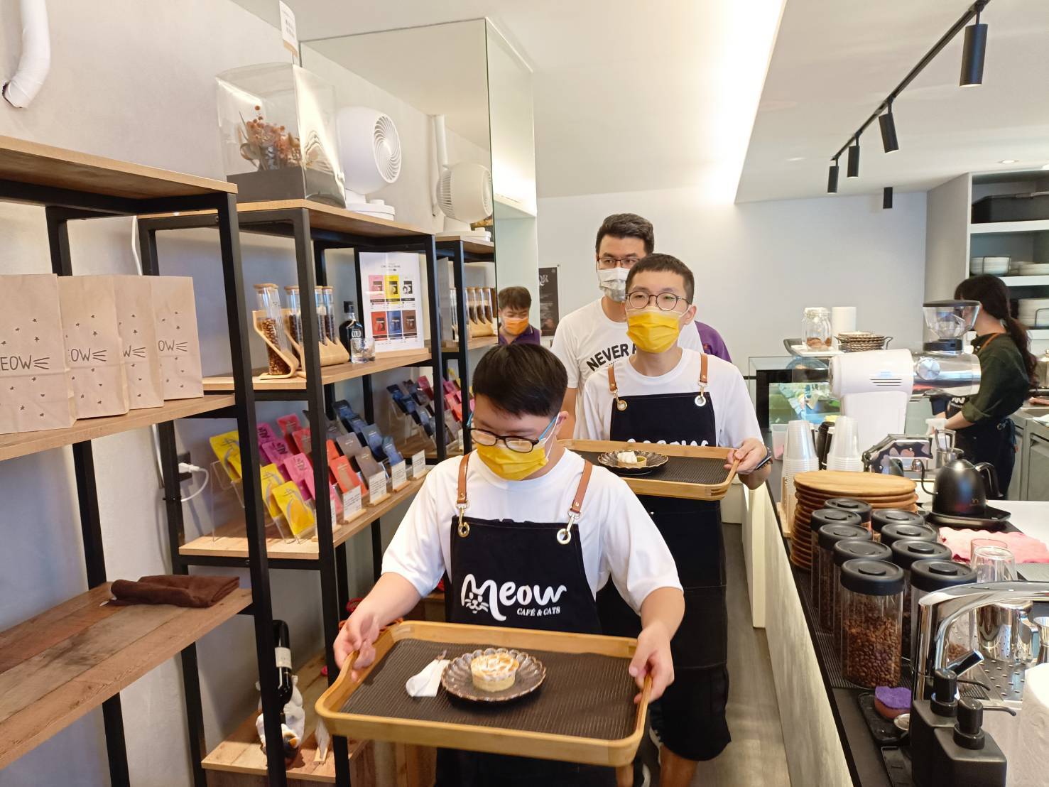 本日活動,邀請唐寶寶來擔任一日店長,看著他們用心學習的態度以及送餐點時的認真,也讓他們學習到不同的領域層面,更體驗到與喵星人的療癒世界,業者當日還致贈獎學金給基金會,鼓勵他們繼續學習成長,快樂一夏!