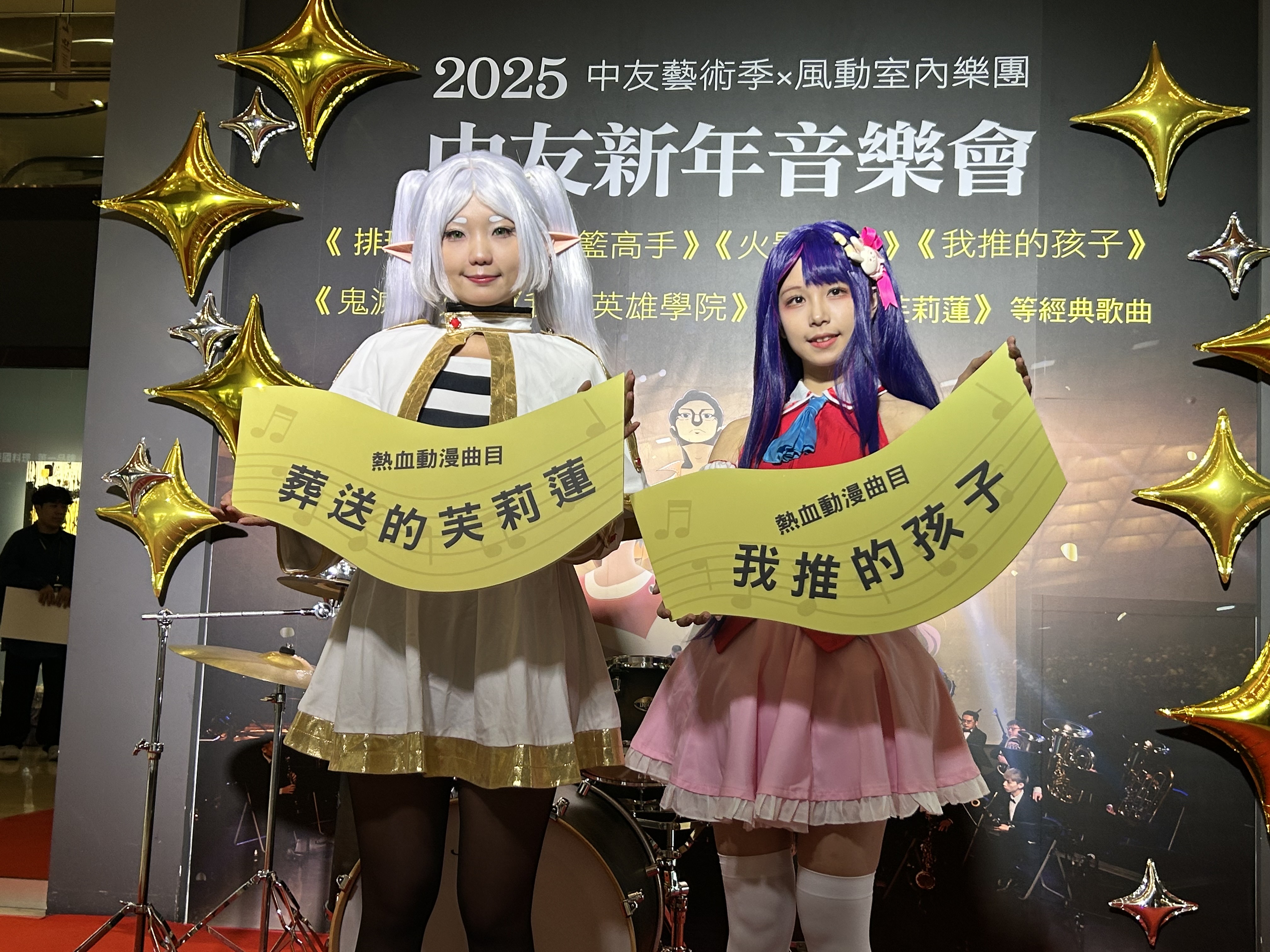 近年動漫熱潮持續延燒,中友百貨位於一中商圈,光是2024年就舉辦了三場大型動漫活動,吸引超過30萬動漫迷入場,看好動漫市場蓬勃商機,今年中友新年音樂會再度與國內知名交響樂團-風動室內樂團合作,演出全台首場經典動漫主題曲目的交響音樂會,耳熟能詳的動漫主題曲-名偵探柯南、灌籃高手、七龍珠、火影忍者、進擊的巨人、航海王、鬼滅之刃、我推的孩子、葬送的芙莉蓮….等等爆紅曲目,這次由高規格的交響樂團演奏氣勢磅礡的樂曲,帶領聽眾進入熱血沸騰的聽覺享受。
