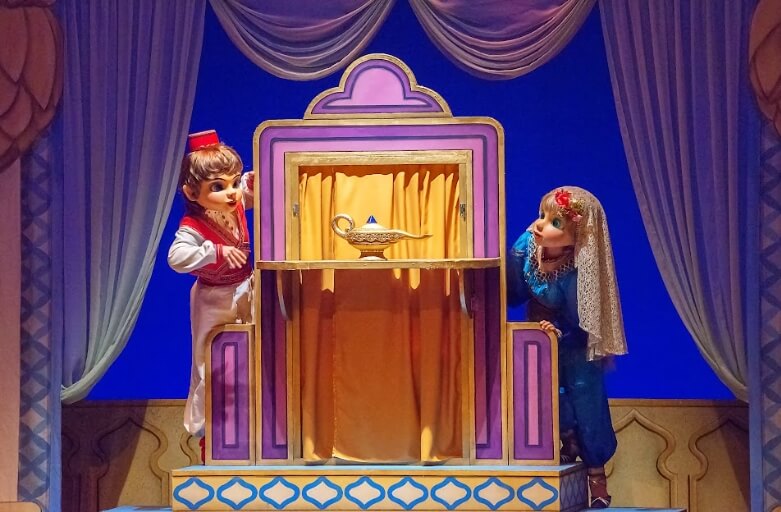 本劇演出由生動活潑的人偶配合國語發音,故事淺顯易懂並且結合科技技術,帶領現場的各年齡層大小朋友親歷阿拉丁的魔法之旅,一同展開最精采的冒險,藉此傳遞故事的寓意,期許孩子在觀賞結束後,心中有著「我想成為跟阿拉丁與公主一樣聰明又勇敢的人」,從童話衍伸出的意涵,了解真誠的心比魔更強大、自己的願望能藉由努力來實現,體會世界上有比魔法更可貴的東西,那就是「友誼」與「勇氣」。
