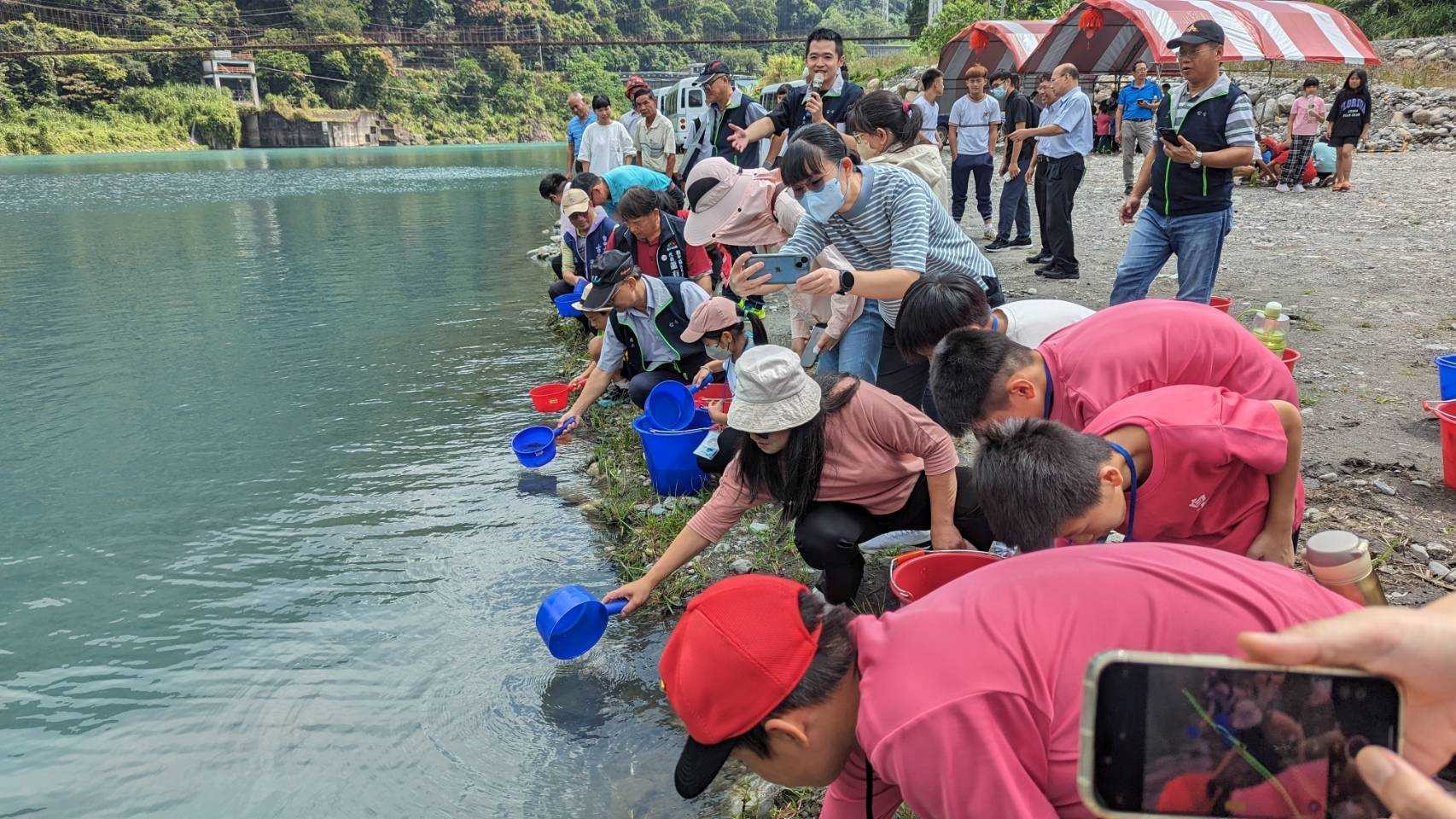 ▲ 大甲溪電廠年年邀請在地機關及學校學童共同參與魚苗放流活動。