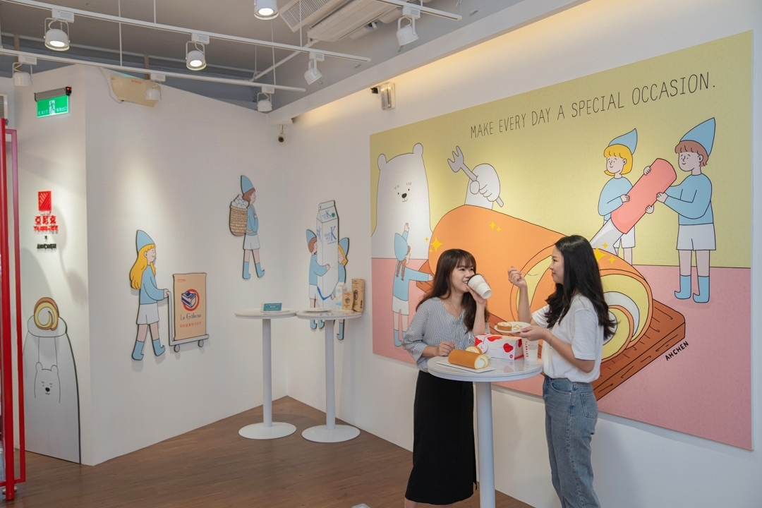 台中首間24小時智能甜點服務選址在熱鬧美食的商圈,崇德店鄰近洲際棒球場與多間學校周邊,瞄準年輕族群及全時段消費需求,結合亞尼克24小時YTM智能二代機,讓服務時間延長,讓消費者無論在白天或深夜都能前往選購,不僅滿足加速快速購買服務價值,同時延長時間滿足甜點控深夜療癒需求。除此之外,台中崇德門市更是首間與台灣插畫藝術家合作的風格特色門市,特別邀請新銳插畫家AHCHEN在牆面上設計「Make every day a special occasion」主題牆,以小精靈重現招牌生乳捲的製作過程,而可愛呆萌的白熊拿著甜點叉準備開動,清新與溫暖的插畫風格,讓消費者坐在用餐區溫馨品嘗,插畫強還多了互動區歡迎甜點控與捲粉們留言心情,成為最佳療癒空間,也多了一處超卡哇伊拍照打卡空間。